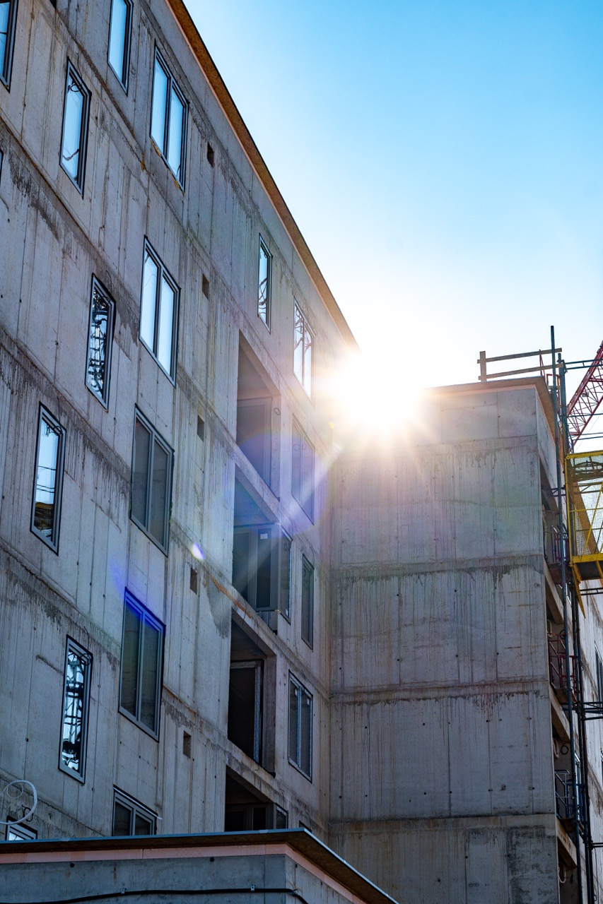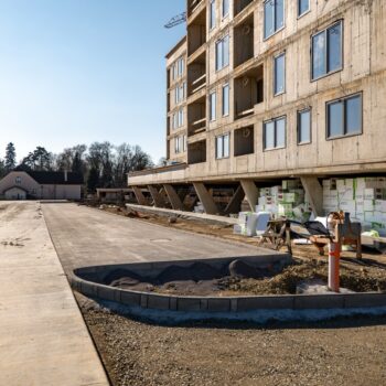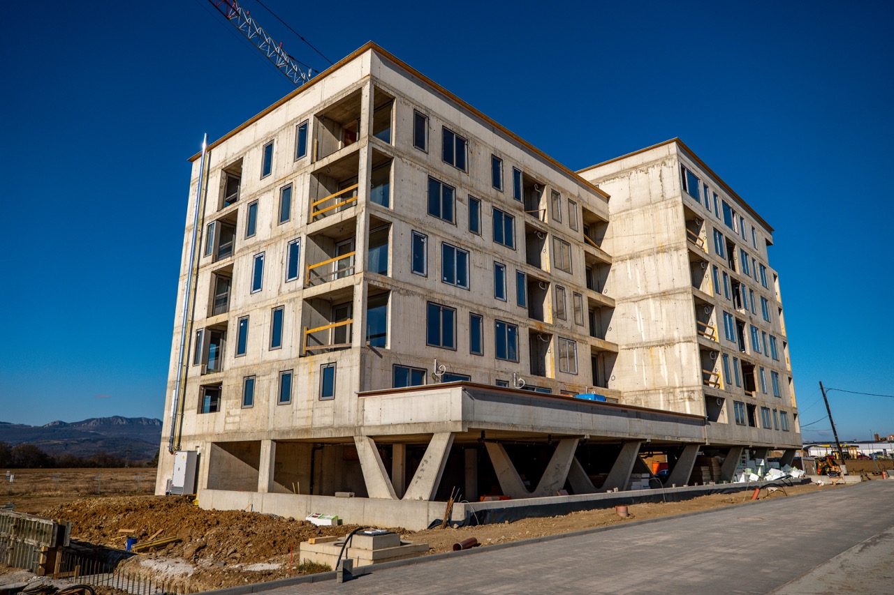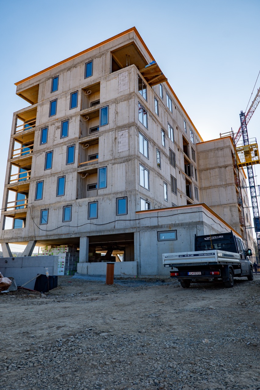 Aktuálne prebiehajú interiérové stavebné práce, vrátane obkladov a dlažieb v kúpeľniach. V bytových domoch je už osadený výťah a čoskoro sa začne s realizáciou fasády.