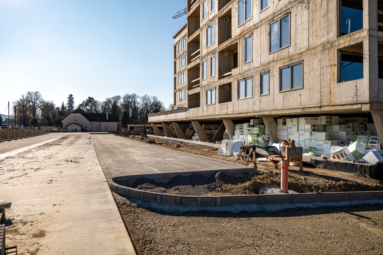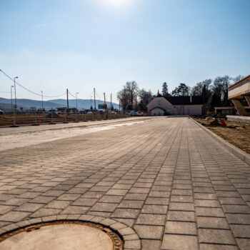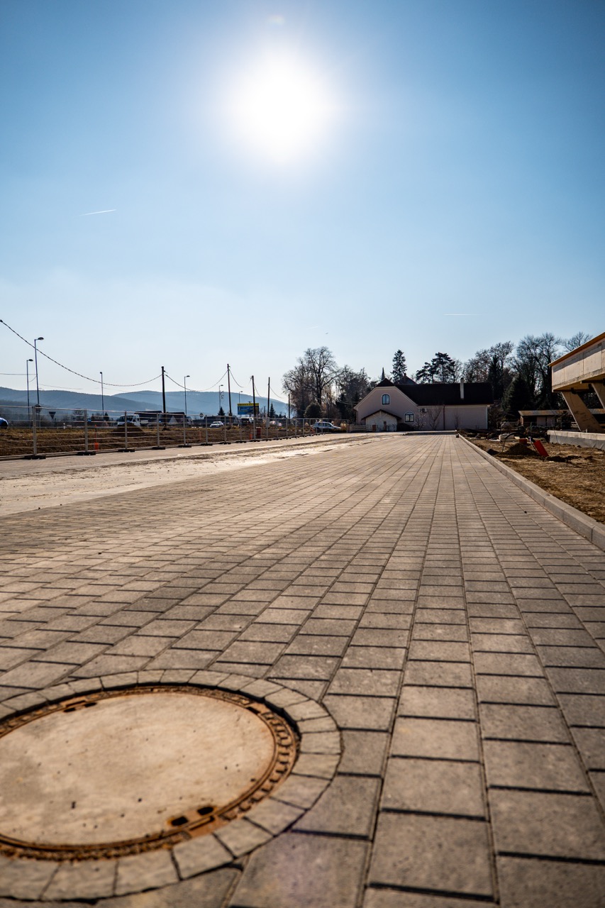 Súčasne prebieha aj úprava terénu a výstavba prístupovej cesty, ktorá vedie na už vybudované parkovisko vrátane vstupu do parkovacieho domu.